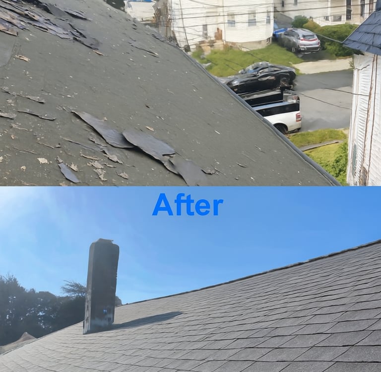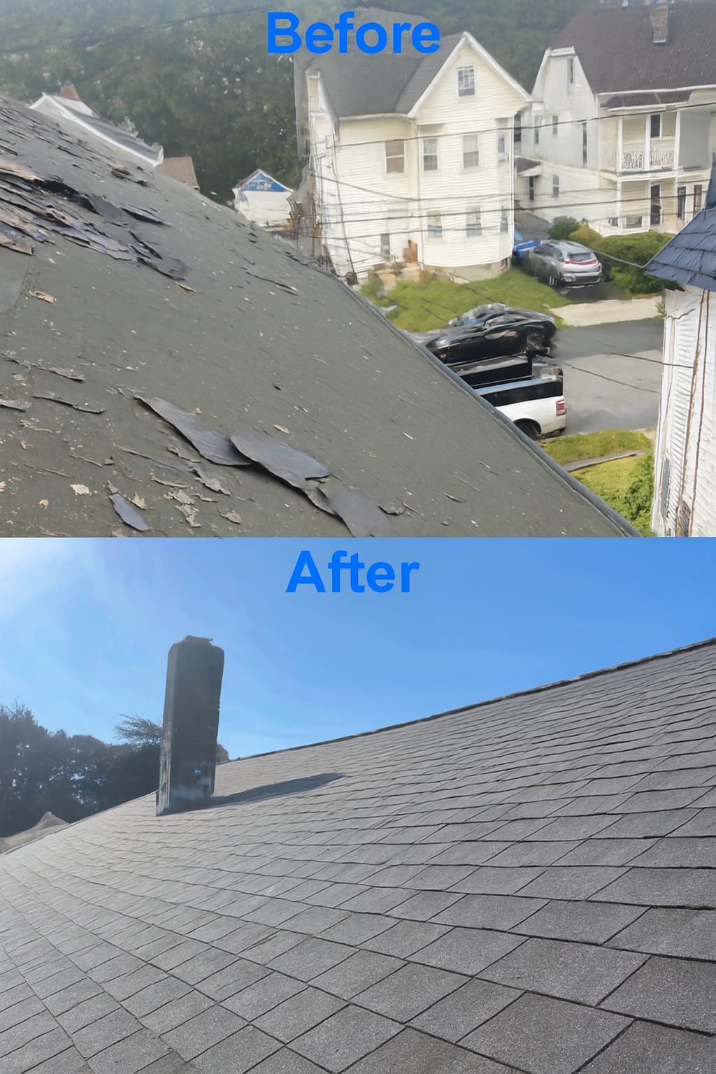 We recently helped a homeowner in Wallingford whose roof had severe shingle damage. After a full inspection and repair, their home is now protected with a clean, watertight finish.